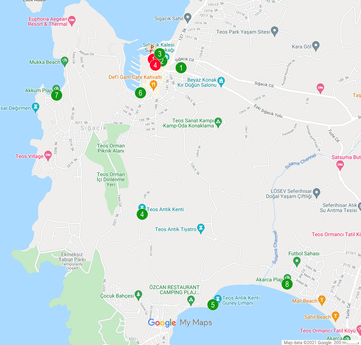 Bu bölümde Seferihisar’da, özellikle de Sığacık’ta gezilecek yerlerin ve mekân önerilerimizin konumlarını paylaşıyoruz. Google Maps® konum listesini kendi hesabınıza buradan ekleyebilir, özelleştirdiğimiz harita detaylarına buradan ulaşabilirsiniz. Biz kendi gezdiğimiz sıraya göre bir rota oluşturduk. Bu rotayı kullanarak zamanınızı verimli bir şekilde değerlendirebilirsiniz. Haritada gezinmek için harita penceresine tıklayınız. Konumlara ve mobil cihazdan kolay erişim için […]